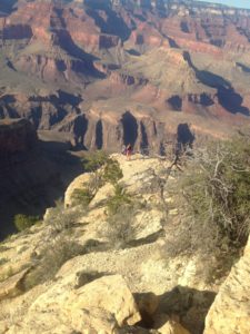 On my second trip, my son and his wife joined us for a weekend and planned a sunrise hike into the canyon. We spent the night in Williams, got up at 4 AM, and stood at the edge of Mather Point Amphitheatre. This vista had seating for well over 100 people with room for many more along the railing. It was chilly and we layered in clothing knowing it would warm quickly, but the cool air gave way to what I could only describe as a scene from 2001 Space Odyssey. Music queued as the sun rose. Everyone was silent as we watched the golden globe slowly reveal the multiple crevices of the wall off in the distance and the ground begin to glow down the slope beneath us. Pictures and words didn’t do it justice; it was a surreal experience.