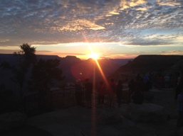 On my second trip, my son and his wife joined us for a weekend and planned a sunrise hike into the canyon. We spent the night in Williams, got up at 4 AM, and stood at the edge of Mather Point Amphitheatre. This vista had seating for well over 100 people with room for many more along the railing. It was chilly and we layered in clothing knowing it would warm quickly, but the cool air gave way to what I could only describe as a scene from 2001 Space Odyssey. Music queued as the sun rose. Everyone was silent as we watched the golden globe slowly reveal the multiple crevices of the wall off in the distance and the ground begin to glow down the slope beneath us. Pictures and words didn’t do it justice; it was a surreal experience.